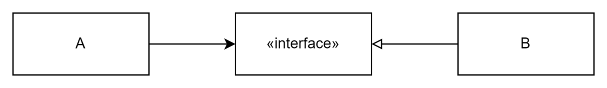 - 使う側、使われる側が直接参照関係を結ぶのではなく、間にインターフェースを挟むことで双方がインターフェースに依存するようになる